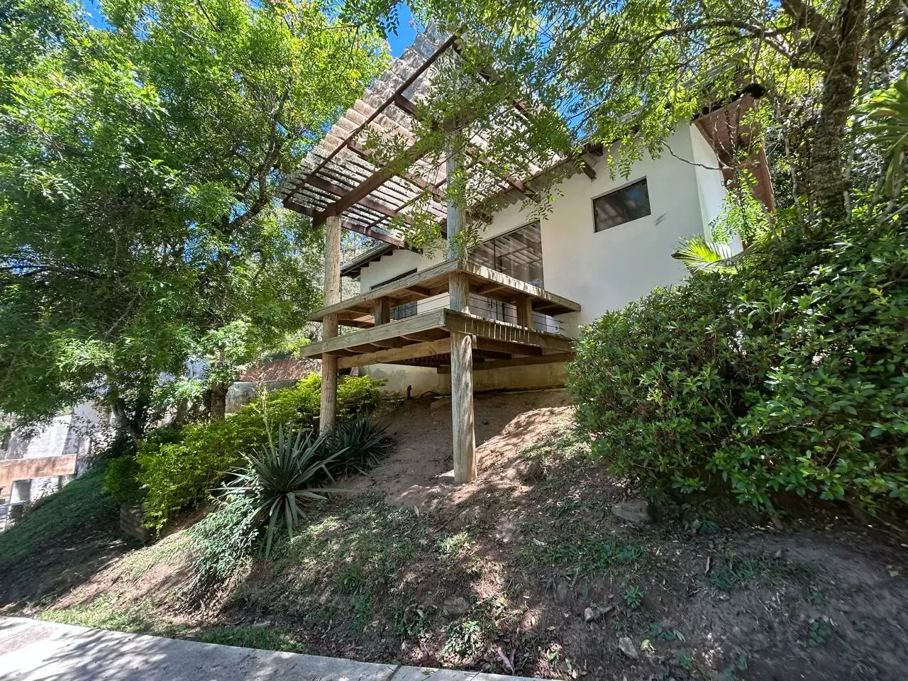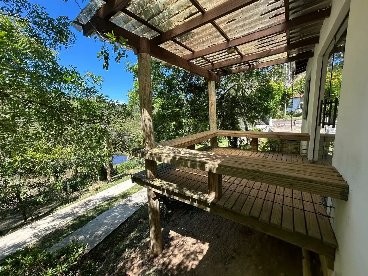 Casa ampla com sala, cozinha, 3 quartos, área externa coberta e vista panorâmica.